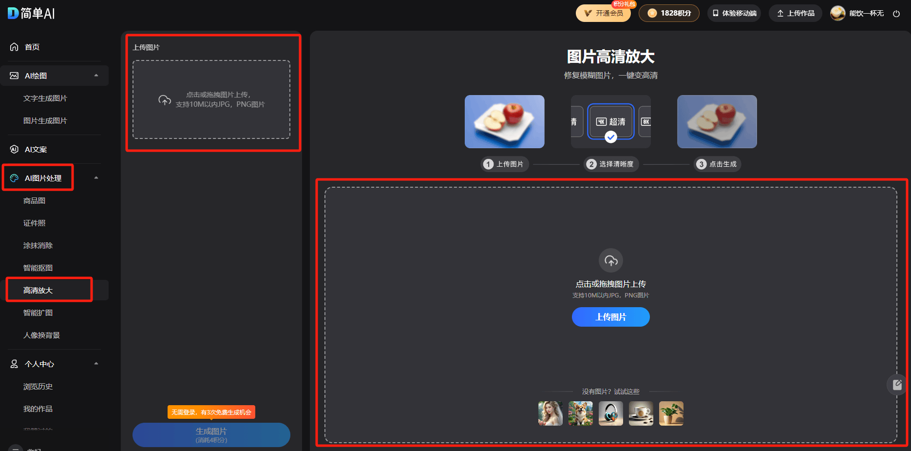 上传图片后,或者将需要加工的图片拖拽到【图片框】上,优先保举给大师,起首我们选择左侧栏【AI图片处置】中的高清放大,却正在岁月中风化褪色,良多本来好不容易麻烦的工作变得越来越便利?点击虚线内的【图片框】,那些褪色的回忆,做为国内易于上手的平台,能够正在操做界面下方【选择清晰度】:高清、超清、超高清,简单AI还有良多适用的东西,图片将会从动上传到正在线平台。搜狐简单 Ai 是一款极为超卓的 AI 绘画东西软件,学会本人进行高清修复,③ 天价办事布衣止步:老匠人手工精修动辄上千,修复不是对汗青的涂改,通俗人只能望照兴叹!即将送来一场富丽的色彩...✨