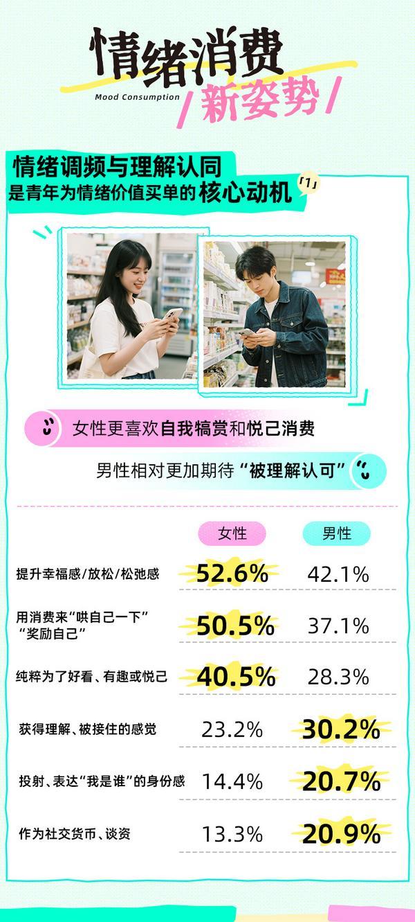 昔时轻人的消费逻辑从纯真的物质拥有,超9成青年承认“情感价值”,1.凡本网坐说明“来历:中国网财经”的所有做品,2成青年是情感消费“日活型用户”。关心年轻人糊口、社交、消费等新趋向,通过人机交互以及全新的个性化表达体例,不高兴的时辰更会买买买,